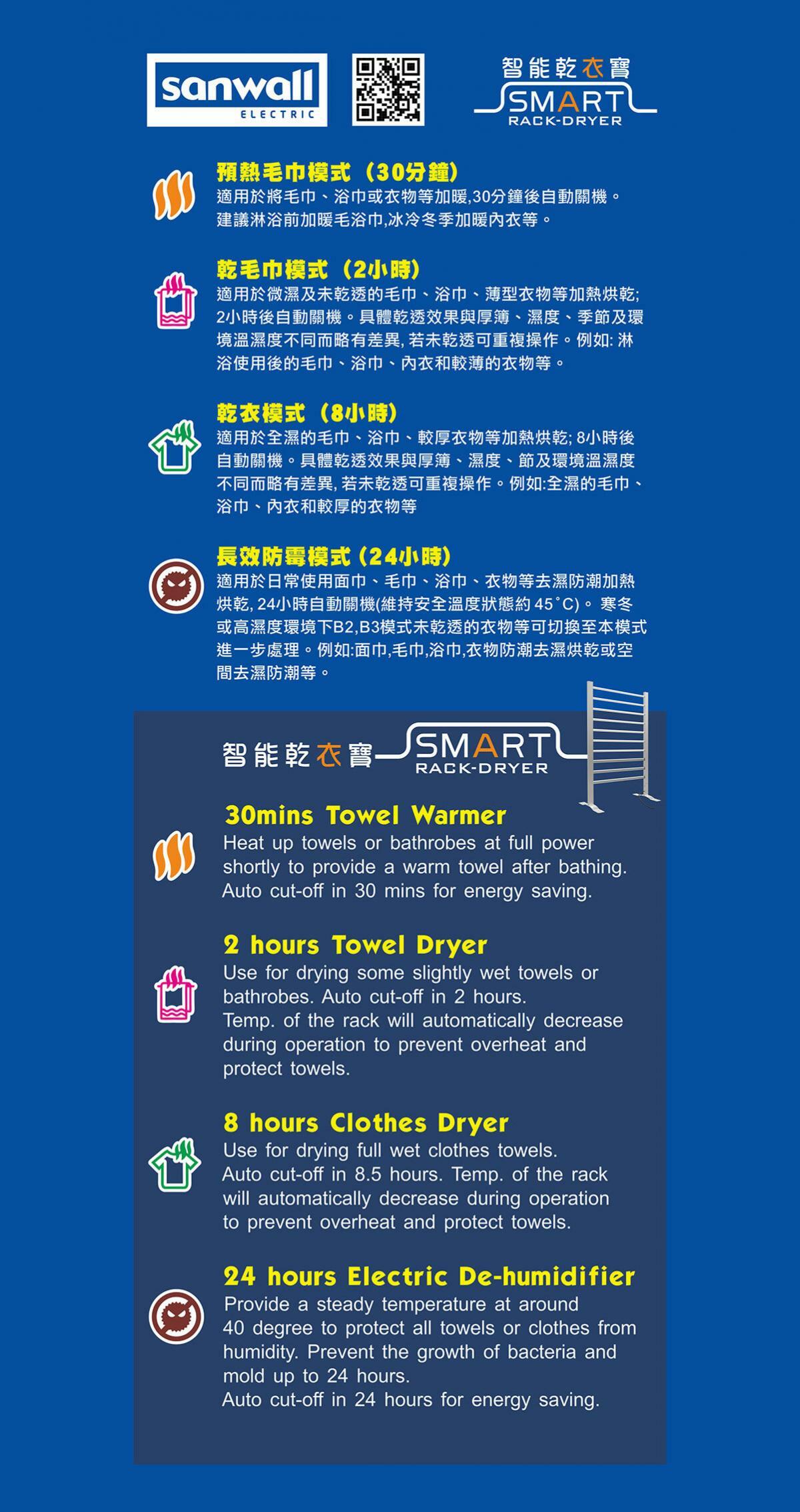 | 全球首創智能乾衣寶. 有別於一般只有開關式的電熱